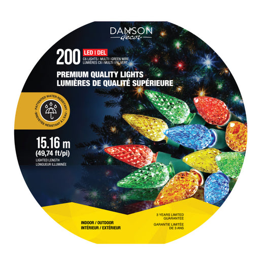 200 FACETTED C6 LED LIGHTS, INDOOR/OUTDOOR, GREEN WIRE - MULTI