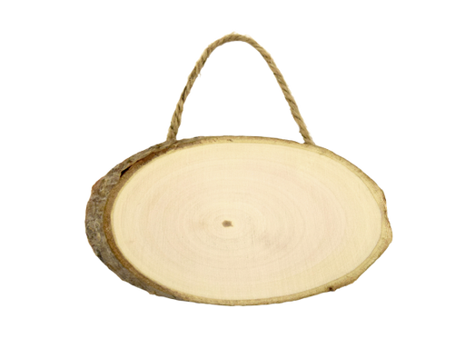 WOOD OVAL PLAQUE W/ JUTE CORD 13.5IN X 7.5IN X 0.9CM